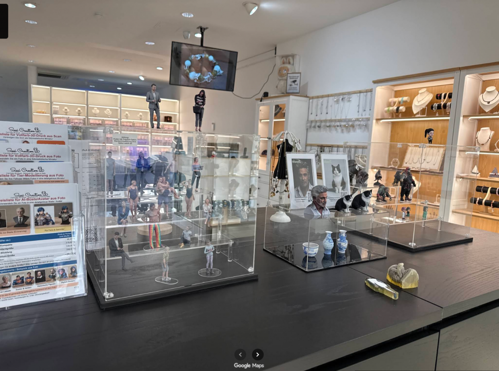 Lassen Sie sich direkt bei uns im Geschäft professionell 3D-scannen oder bringen Sie einfach ein Bild der gewünschten Person oder Ihres Tieres mit. Auf dieser Grundlage entsteht ein individuelles 3D-Modell, das Erinnerungen für die Ewigkeit schafft.